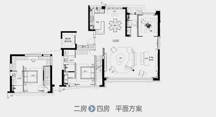 建面约143㎡百变成长跃层以创新可成长型设计,打破了传统户型的格局限制,可根据家庭结构的变化灵活调整空间,从而实现“一套房子,住一辈子”。