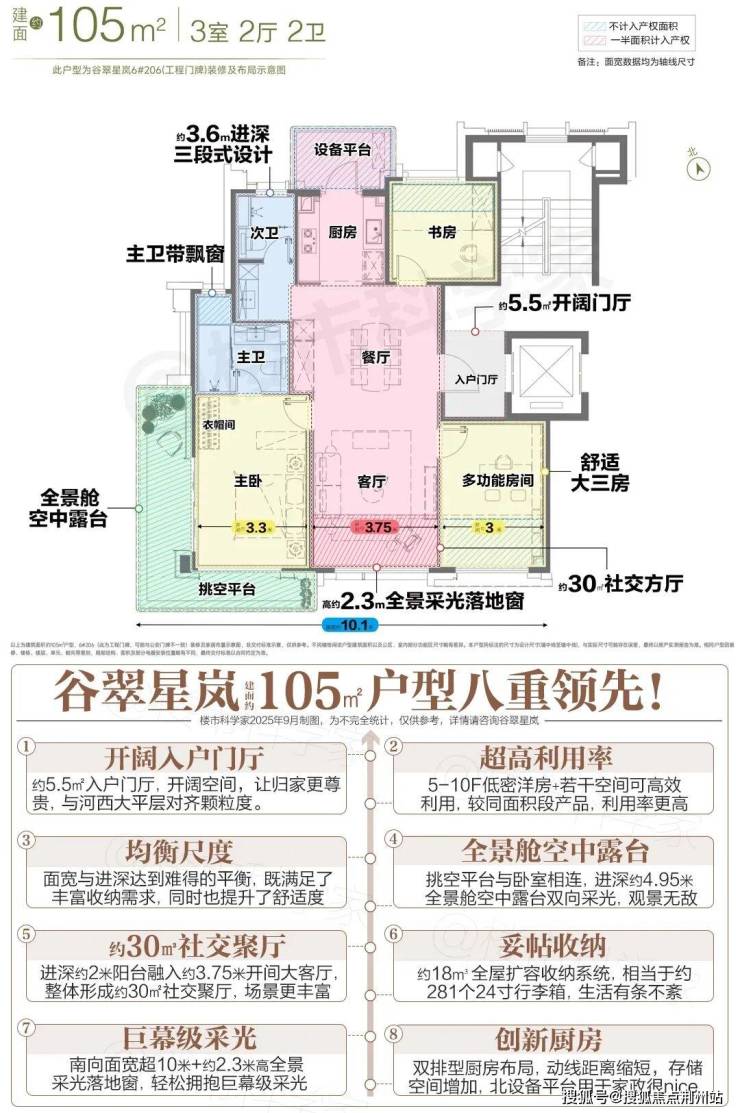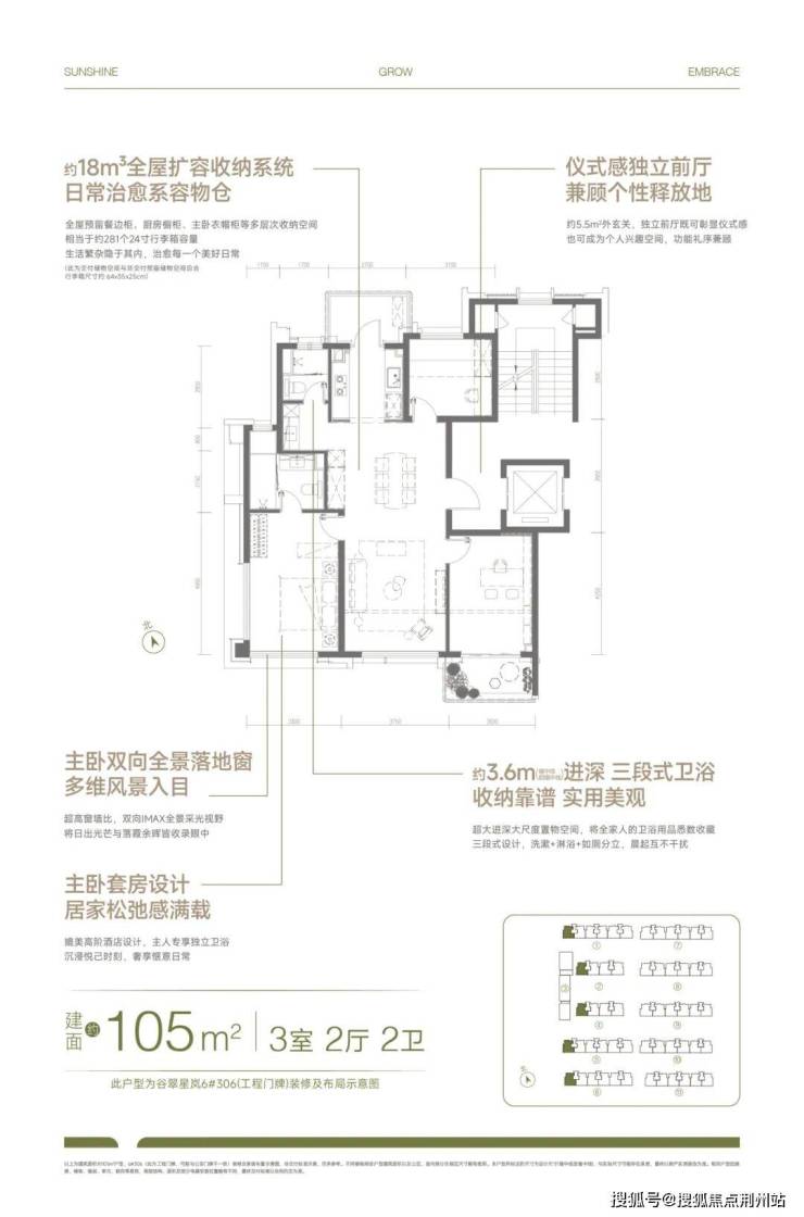 而谷翠星岚的户型设计就注意到这一点,一定要根据真实的居住场景来设计空间布局,让每一个空间都能最大化发挥作用,而不是光为了好看。接下来,我们就以建面约105㎡为例,看新居置地和万科代建是如何以克制面积,实现建面约130+㎡以上户型才具备的功能与场景,八重领先将预定南京楼市全新爆款!