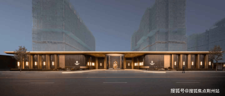 约80米社区大门,以“长卷”的形式展现于城市。约6.6米高的大挑檐,为业主撑开气场,尺度上便拉满了酒店仪式感。