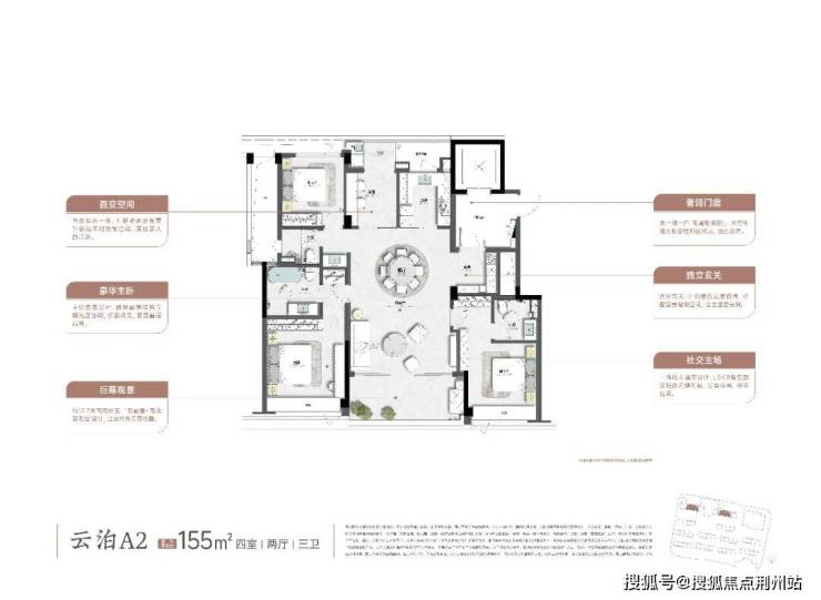 它主打的约155㎡户型,堪称“小身材大容量”。市面上很多同面积段户型可能会感觉紧凑,但望云庭通过“类一梯一户”的入户设计、约12.7米的南向大面宽,以及LDKB一体化的大通厅(餐、客、厨、阳台一体),把空间感做得很足。