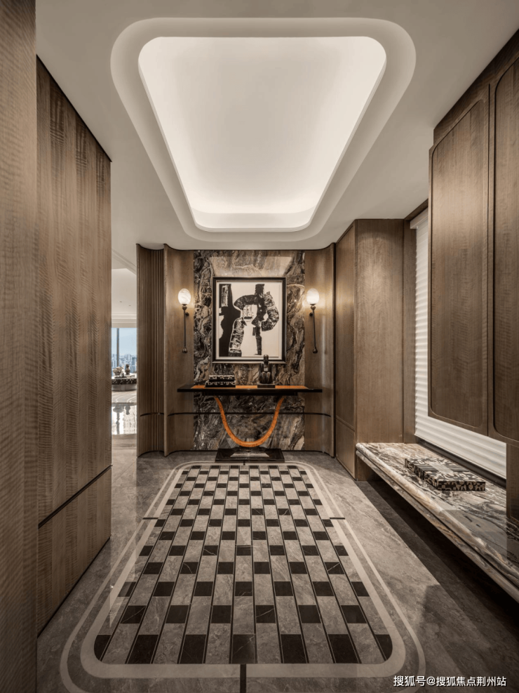 穿越约88米恢弘门庭,仿佛步入一座艺术馆。光影从金属格栅倾泻如诗,铂金钻石材与穹顶天幕勾勒优雅,开启一场盛大序幕。大手笔延展的环岛落客,80年全冠朴树静立中央,令瑰丽酒店式归家成为现实,"一绕、二停、三赏",从容步履间,身份与品味悄然契合。
