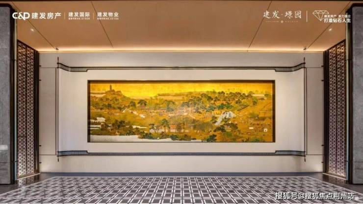门厅之中,中国工艺美术大师国家级非物质文化遗产代表性传承大师张来喜亲制约8.8 米《姑苏繁华图》展卷而迎,取阊门市井烟火为开篇,沿山塘街枕河人家铺展,终以虎丘塔文脉地标收势,更将璟园建筑意象悄然融入画面,让古卷与当代人居自然共生。