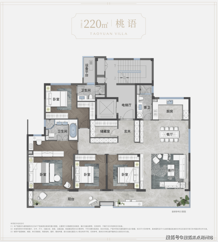 同时,启晟绿城·湖境桃源创新了部分产品,以建筑面积约220㎡无界大平层重新定义大宅的标准!南向约17.4米四开间面宽,采光与通风一流;双套房、三卫全明设计,呈以奢雅起居范式;LDKB一体化中央会客厅,盛载一家人的欢聚时光……空间尺度与功能从容有序,匹配启东风雅名士的生活理想。