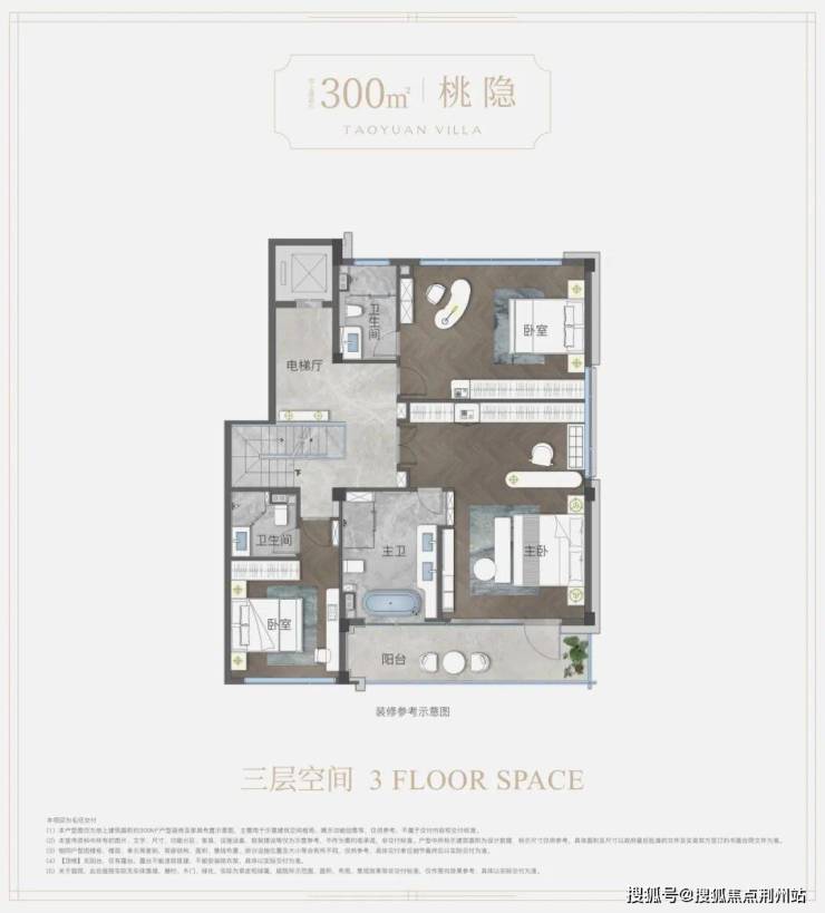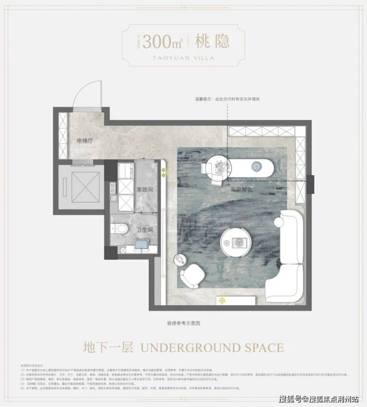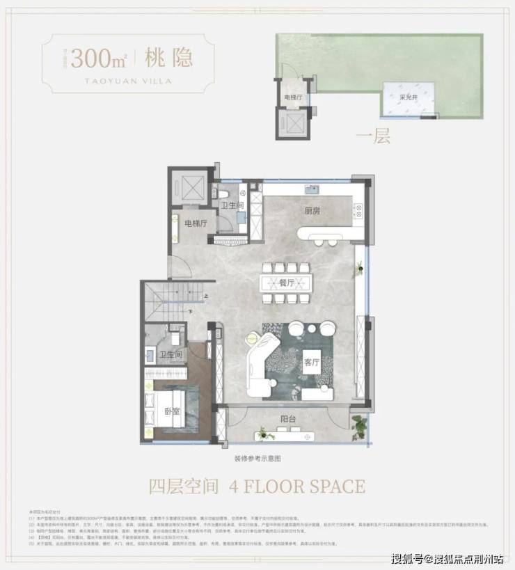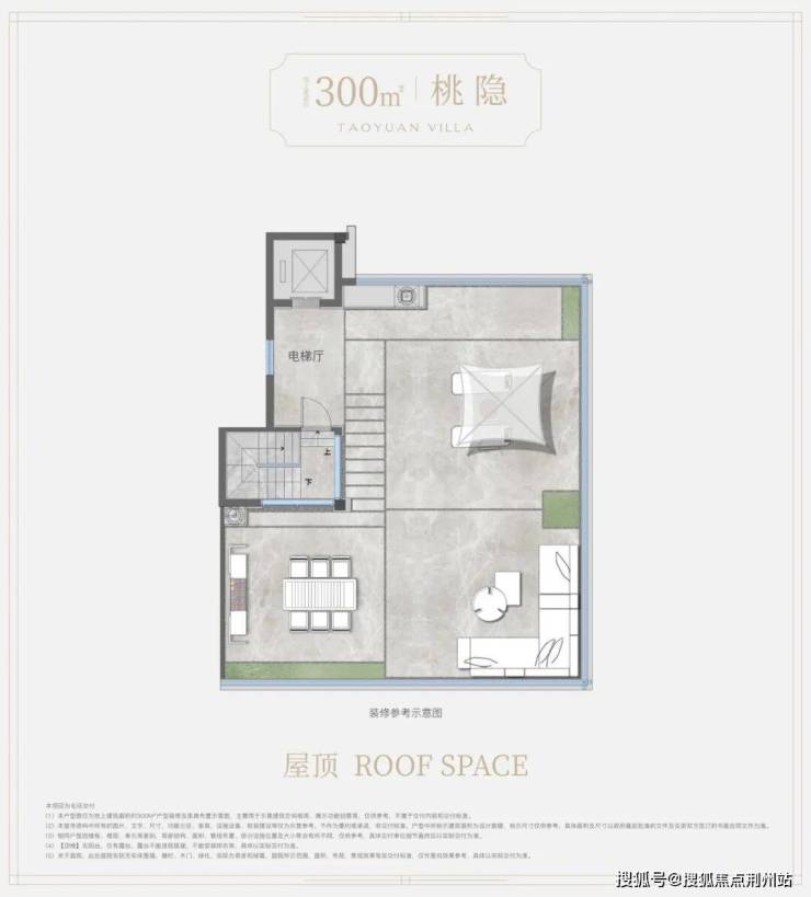 地上建筑面积约300㎡上叠户型——“桃隐”,取“结庐在人境,而无车马喧”的隐逸气度。楼上楼下动静分区、各有天地;顶层奢阔露台,观星揽月、天地入怀;独立地下空间,私梯入户。