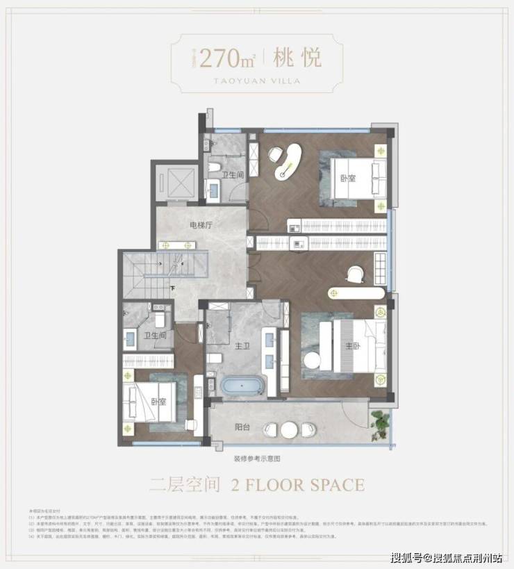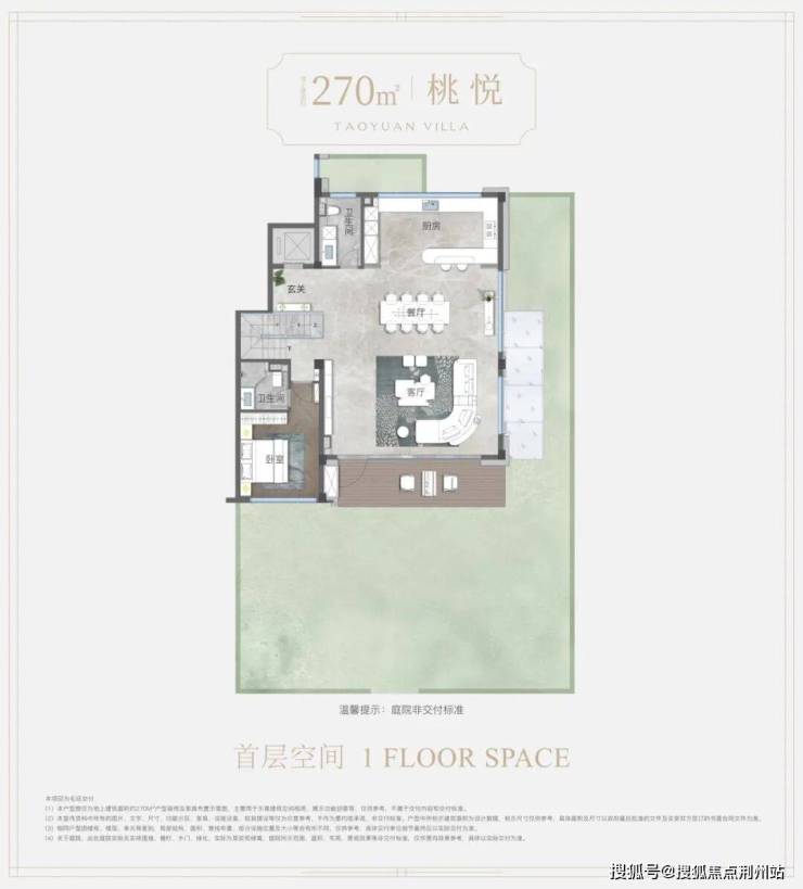 地上建筑面积约270㎡下叠户型——“桃悦”,取“桃花流水窅然去,别有天地非人间”的洒脱胸襟。超140㎡漫境花园,独立门户出入,独栋级入户体验;地下空间阳光灵动,挑高尺度约5.5米,与夹层空间的设计,呈现出挑空式朗阔格局,盛纳生活无限可能。