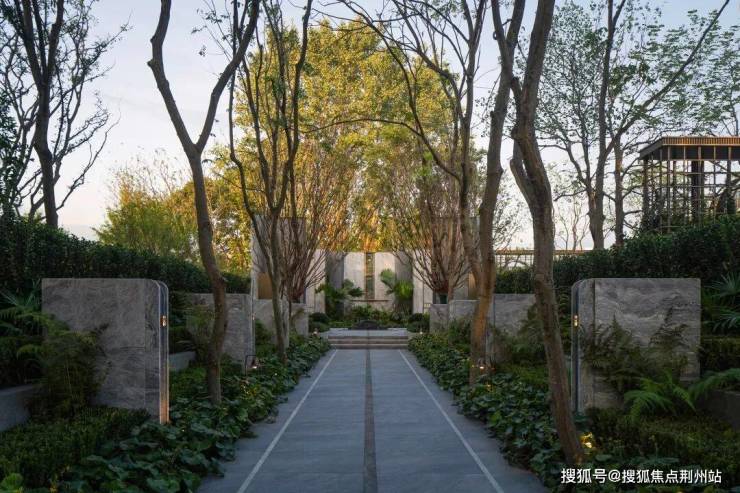 借鉴思南公馆经典的三重归家礼序,项目巧妙利用原始地形打造拥有约2米高差的归家台地,特别设计"三升九阶"的三段式台阶,寓意"步步登高、层层递进、终臻圆满"