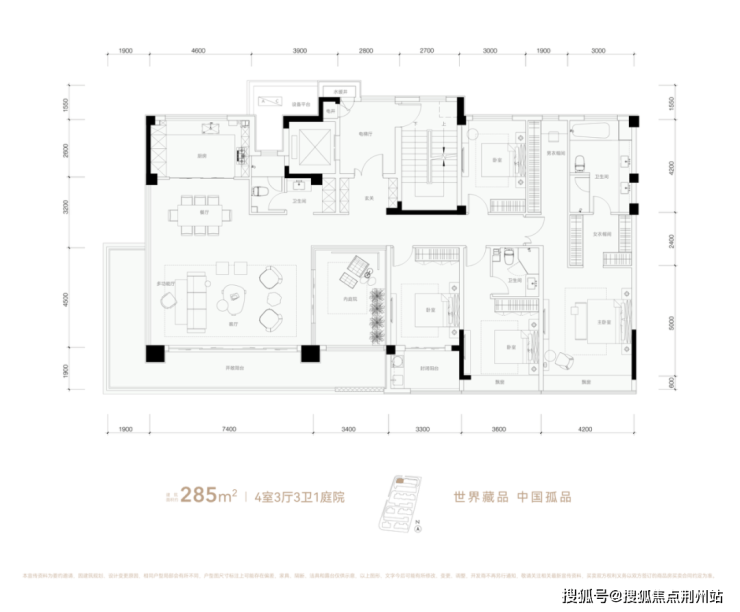 以285㎡户型为例,约7.4米超大面宽客厅,搭配全房23.8米济南第一面宽,重新定义居家格局与视野。约100㎡的景观会客厅与19.1米拐角阳台相连,形成270°环景视野,让山景入画,日常成诗。匠心独创的约15㎡内庭院,整体降板18公分,可随心打造为茶室、园林或家庭氧吧,实现真正的引景入室。南北双套房设计,特别是约50㎡南北通透的主卧,营造出“会呼吸”的私密领域,让光、风、景在此自由流动,成就一方超越物质的精神栖所。