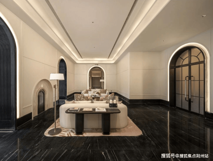 项目规划约2000㎡高奢美学会所与约1000㎡架空层泛会所,打造了全龄段、全时段的多功能社交空间。其中,由梁志天操刀的高奢美学会所。