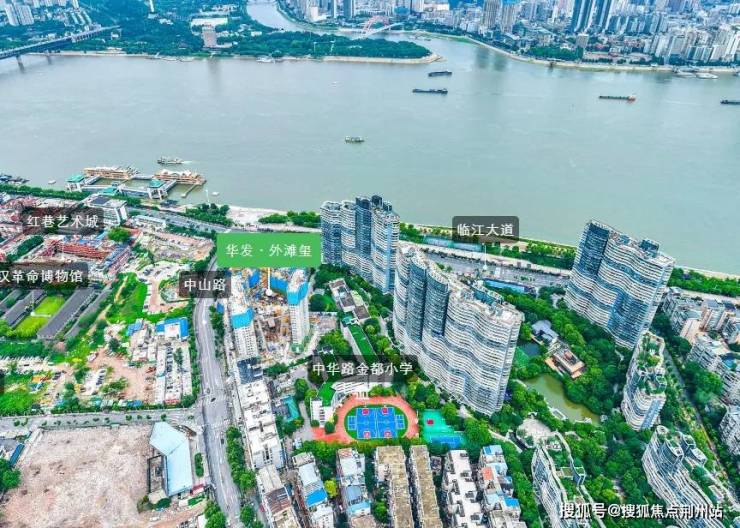 项目位于武昌区临江大道与中山路的交汇处,属于武昌内环。临近长江大桥、黄鹤楼等地标,江对面就是龟山电视塔,两江交汇之处,可以说占据了武汉江景最精彩之处。