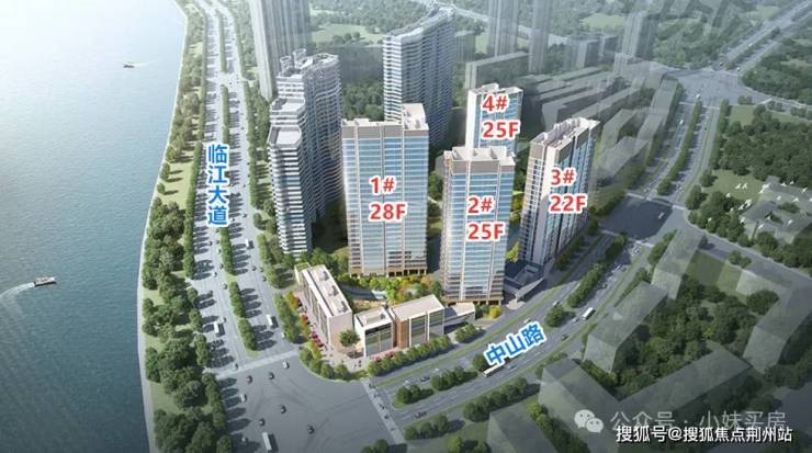 其中1号楼只有1个单元斜对着看江,1、2号楼部分看江,中高区西边套户型能做到正面看江和270°观江。