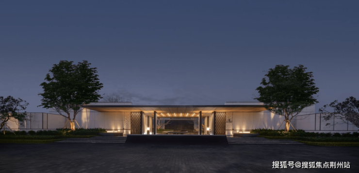 初见门堂,即现非凡气宇。巨大飘檐中轴对称耦合大宅气场,约60m宽的目光动线给人以强烈视觉冲击。石材景墙下端加设香槟色哑光金属板造型,似是精心裹绑米黄石材与木质屋顶的轻奢缎带,与转角衔接边缘深刻咬合,豪放中兼顾小节。