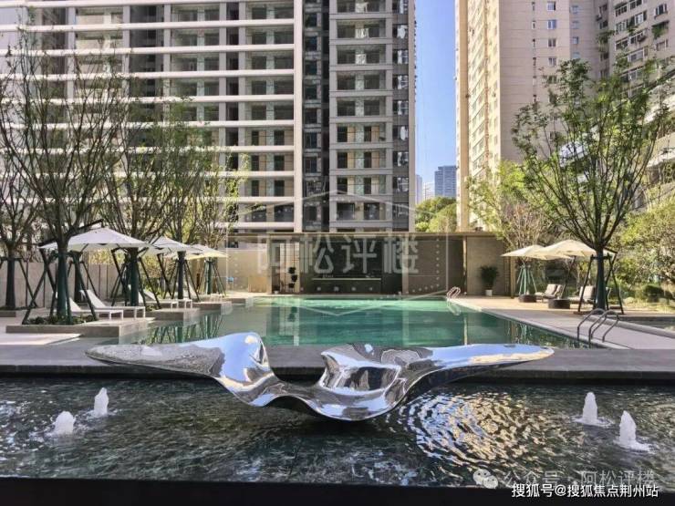 项目整体地块不大,还在社区中央做了一个泳池!这也是绿城的标配!不过,做了泳池之后,本就不大的园林,更没什么景观了: