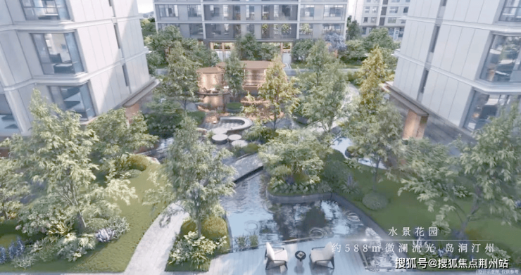 绿城·馥香园的山水庭院设计,巧妙融合了山、水、石、树等元素,呈现出一种独特的视觉美感,仿佛将人们带入了一幅生动的青绿山水画卷之中。其中,流水跌瀑的设计尤为引人注目,老皮石模拟的天然崖壁与山石错落叠放,水瀑落下时飞珠溅起,营造出一种“断山疑画障,悬溜泻鸣琴”的诗意氛围。