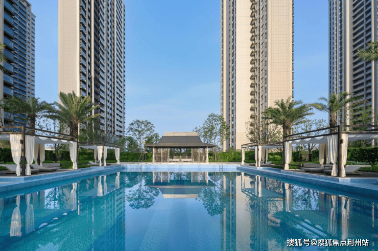 内部设有一个近600㎡的标准泳池和一个儿童戏水池,配合社区多个全龄共享的休闲架空层,使不同年龄段的住户都能在归家途中,快速地找到适合自身的活动空间。