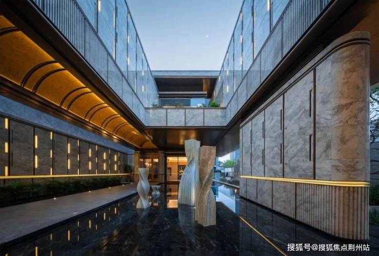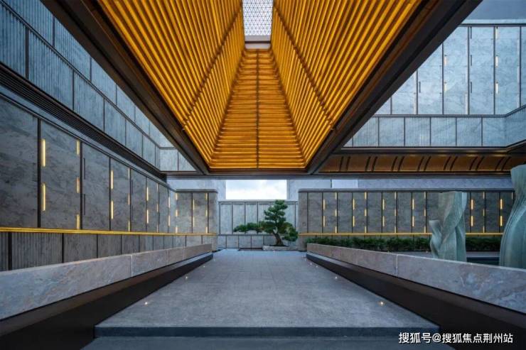 我们可以从大门开始,一起再来感受一下——隐性的显赫从大门走进去,你看到的是绿城非常经典的中轴对称。这种中轴对称不是像过去一样纵深对称,当你往里走几步,马上会感受到有一个巨大的「华盖」笼罩着你,它的灯光会照耀着你回家的身影。你根本不需要思考,你的潜意识就会让你抬头。走在街上的时候根本注意不到里面有这么强的震撼力,只有往里走几步进去了才能感受到,所以我把这个大门里的「华盖」,叫做「隐性的显赫」。
