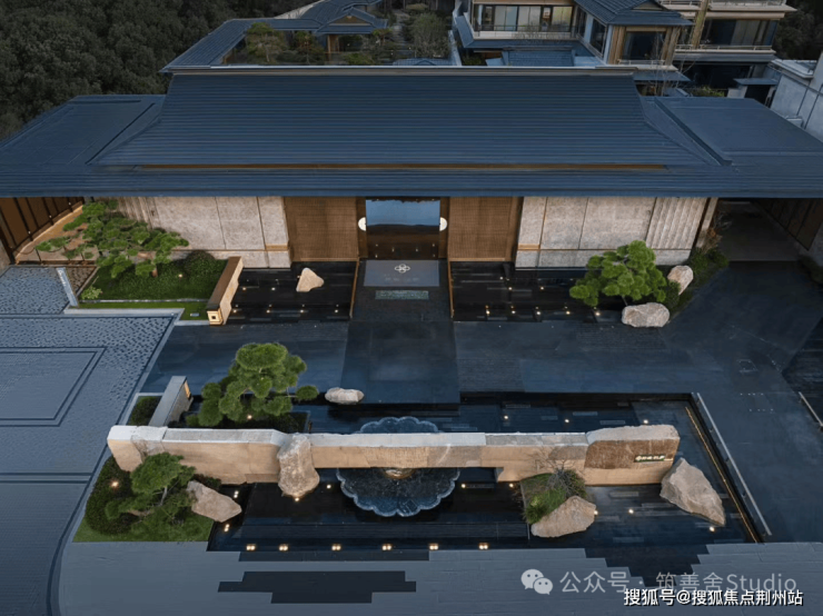 作为绿城庐系全新力作,樾庐不仅传承经典,更引领区域人居焕新升级。九米建筑与蓝颂景观,携手春山秋水形成的大师团队,再次呈现庐系产品基因的创新表达。小区大门延续绿城“庐系”的高配置传统,入口处宏伟的大门尽显气派,整体风格深具宋韵雅致。主入口以简雅流线勾勒诗意画卷,水为渡,松相迎。昭示景墙隔绝尘嚣,将园景纳藏其中。景墙下,溪水潺潺,灵动水景与拙朴景石相映成趣,引水造景,藏风聚气。松影摇曳,光影流转,方寸之间,宁静深远,风雅闲适,谱写归家序曲。