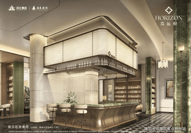 产品力卓越:由国际设计大师团队打造,融合爱马仕Horizon高定美学,建筑立面采用石材+铝板+大面玻璃,顶部金色格栅塔冠彰显尊贵。