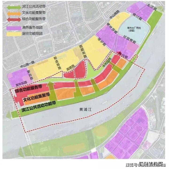 项目位于黄浦滨江板块,早在2022年11月,针对黄浦滨江这一部分地块,黄浦区人民政府和上海市规划资源局联合发布了《上海市世博会地区文化博览区控制性详细规划(HP-031风貌保护街坊保护规划)(公众参与规划草案)》就有明确的规划,未来会形成三条平新岸线功能带,一是滨江活动带,二是文化功能集聚带,三是综合功能服务带。