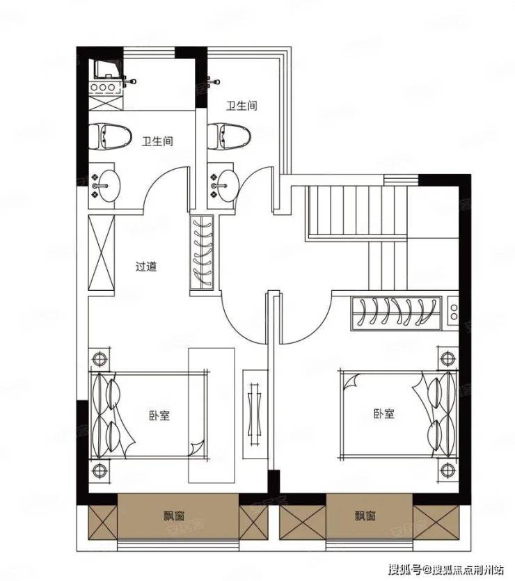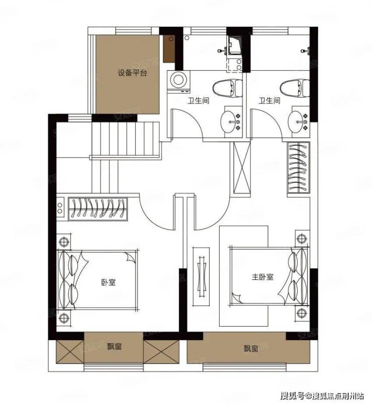 叠墅建筑面积约112㎡,3室2厅3卫