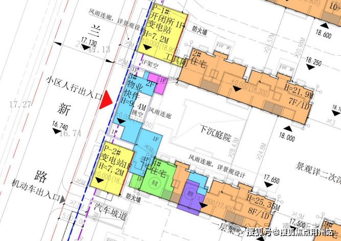 小区的主入口在西门,位于2栋和4栋之间,下沉式会所就在那个位置,如下图所示: