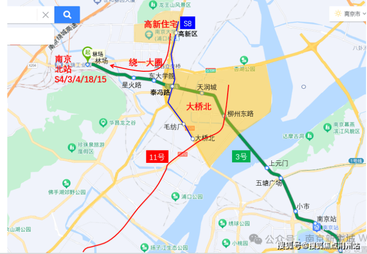 交通:直线距离地铁S8号线高新开发区站仅约200m(来源:高德地图);1站换乘地铁3号线,轻松畅达新街口、南京站、江宁百家湖九龙湖等区域。紧邻南京北站(在建,预计2027年启用),附近还有江北大道快速路、长江大桥、夹江大桥、马鞍机场等;