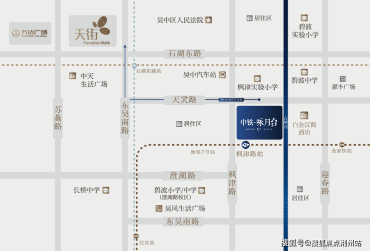 龙湖东吴天街、万达广场两大商业地标环伺,繁华举步即达;轨交2、4、7号线织就便捷路网,连接苏州各区;古塘河、石湖公园在侧,千年运河文化与现代城市文明于此交汇;枫津实验小学、碧波中学等优质学府环布,构建全龄段优教成长圈。