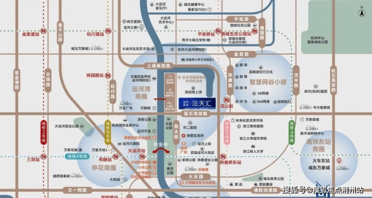 【交通立体纵横】:紧邻留石、上塘等高架主干道,水上巴士贯通运河脉络,高效连接杭州东站与萧山机场,商务出行从容高效;地铁5号线及15号线(规划中)环绕,周边多路公交覆盖,无车通勤便捷。