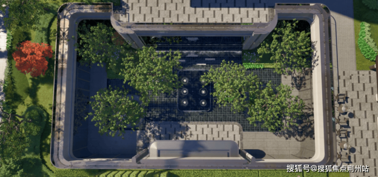约6米高差的下沉庭院,打造垂直森林社区的第一重立体景观“星池云瀑”: