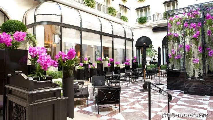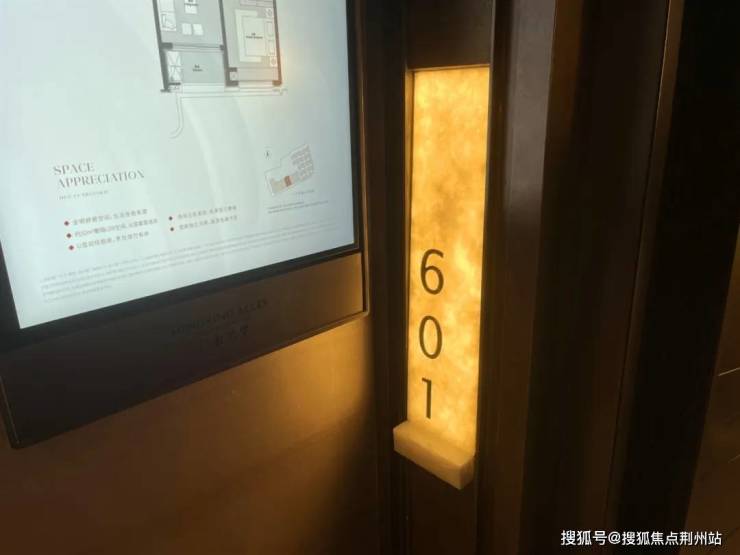 甚至是入户门牌还进行了一定的倾斜角度设计,最终的视觉呈现也是非常和谐,展现了高奢酒店的精致感。