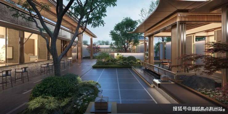 【桂庭集】延续的是《惠山茶会图》的雅集传统,全冠移植百年桂树、黑松与石榴树,搭配宋式茶亭与庭院,宋式茶亭的“版引檐”“避风䈋” 细节精巧,秋日桂香满庭时,邻里围坐煮茶,让“雅趣”成为生活的日常肌理。