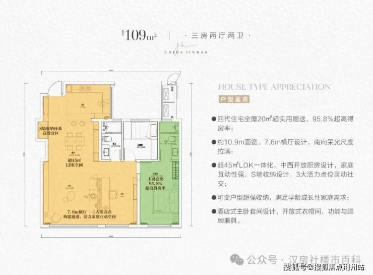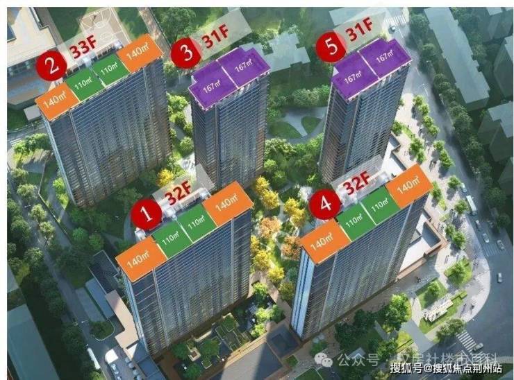 项目共 5 栋楼,1、4号楼为 32 层,2 号楼为 33 层,建面为 109m²(中间户)、139m²(边户)。3、5 号楼为 31 层,建面为 167m²大户型,项目整体偏高端改善型定位,公建化外立面已经是四代宅的标配了,不过可惜的是,中间户的 109m²户型相较之前的大成乐府少了独立的电梯门厅。