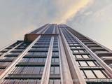 建筑外立面以现代风格为主,采用灰白色与香槟金为主色调,融合石材、铝板与玻璃等材质,塑造简洁典雅的城市形象。屋顶设计延续平屋顶风格,结合立面造型形成统一效果,与周边现代建筑风貌协调呼应。