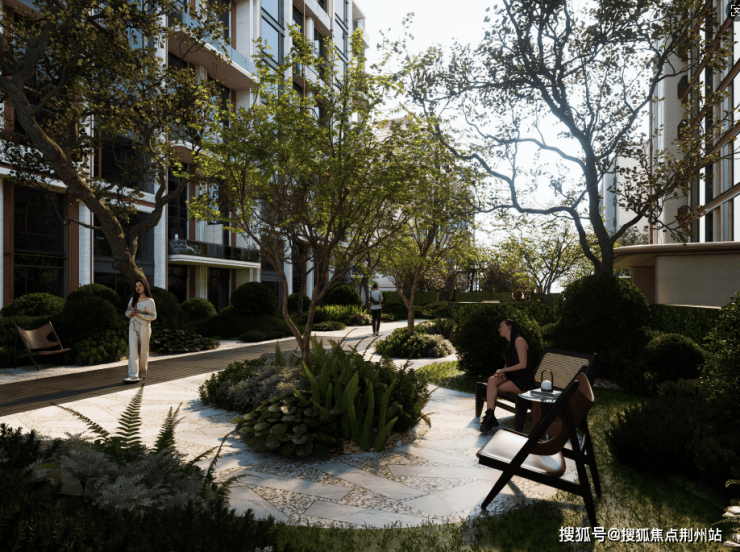这些宅间花园有独立入口景墙、休憩长椅和端景花园。这种有仪式感的归家路,是江核很多项目完全给不了的。