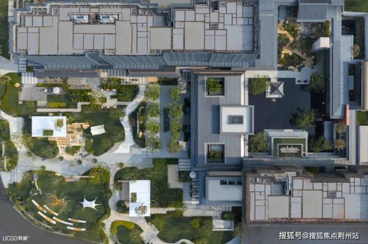 与周边的现有规划相合,与足下的土地气韵相通,设计在整体规划上打造“一街一轴”、“一园一院”、“多组团”的低密度慢生活大盘。同时将东湖梅园的自然意趣,渗透到咫尺的社区檐下烟火,取千湖之省的动态轻盈,延伸到院内可停留的生活场景,完成土地记忆与年轻化生活方式的联结,打造一个可生活、社交、栖居的都市绿岛。