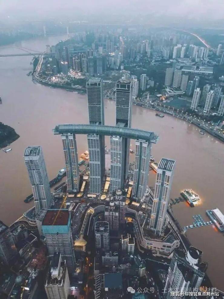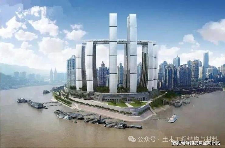 重庆来福士坐落于重庆核心地带——朝天门和主城黄金三角的中心。项目由8座超高塔楼、商业裙楼和空中连廊组成。其中6栋为250米高的塔楼,2栋高达350米的塔楼成为重庆城市天际线的新高度。这两栋350米高的弧形塔楼是中国高宽比最大的塔楼之一,高宽比达9.5。