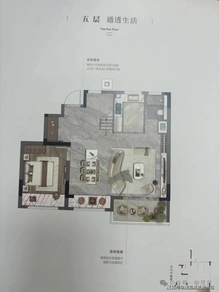 3、超高得房率:通过不计入产权面积的露台、庭院、空中花园,客厅挑空等赠送空间,实现超大面宽与全明采光,采用五面采光设计,搭配大面积落地窗提升采光与视野感;