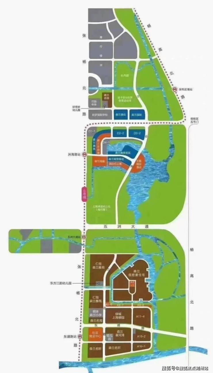 板块的点睛之笔是森兰绿地纵贯整个板块,森兰绿地是“上海市中心城区最大的湖泊绿地,面积相当于2.5个世纪公园、总面积约332公顷的森兰绿地,其中绿地262公顷,水域面积约70公顷”,目前森兰绿地已经基本全面建成,看看上面的规划图,这块绿地有多么的奢侈,简直是豪横。