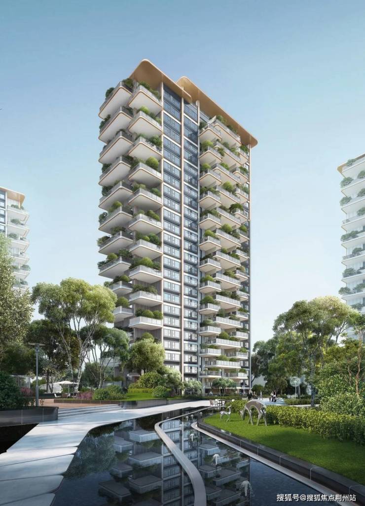 住宅立面采用都市精致路线,根据项目成本控制的实际情况,摒弃复杂的形式操作,以层叠的空中花园为主要形体元素,在绿植的装饰之外,自然生成富有体量感、层次感的立面形象。立面采用白金配色,使建筑调性更显清雅精致。