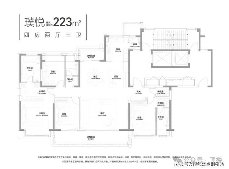 项目主推建面约153-223㎡科技美学大平层,全系四房设计,以“空间哲学”重构生活场景: