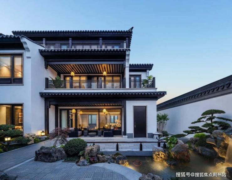 建筑外观采用瓦白墙,有檐口、屋脊的形制,展现了新中式风格的韵味。“景观大师”贝尔高林以“新中式园林”为主题,龙坞山水诗画生活情境为基底,借茶之精髓将内庭院墙、山石松色、镜水碧波融入到溪映听庐这一东方雅境之中。