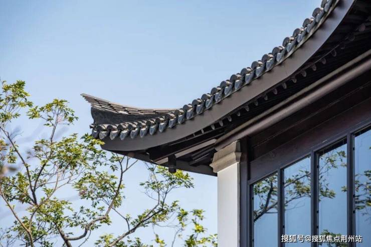 建筑设计出自gad手笔,立面以浅灰石材、咖啡色铝板、涂料为主,主打一个“水墨淡彩”,悬山顶出檐深远、举折平缓。并以简洁金属线条勾勒,将悬鱼、雀替、花窗等元素进行抽象化表达,尽显中式隽永之美。尤其是立面用的铝构工艺,工序繁复,线条立挺,专门邀请古建筑施工单位打造。