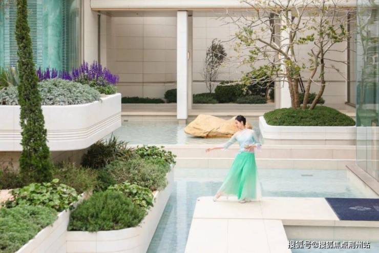 步入示范区水院,这里艺术花墙与油画作品交织,营造了浓厚的艺术打卡氛围。亦有灵动优雅的采茶舞,伴随着流动水景,演绎着一幅茶园春晓、人在画中游弋的诗意画卷。于此,亲水互动与景致生活交融,悦享度假感时光。