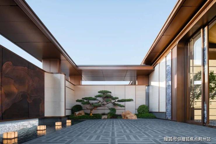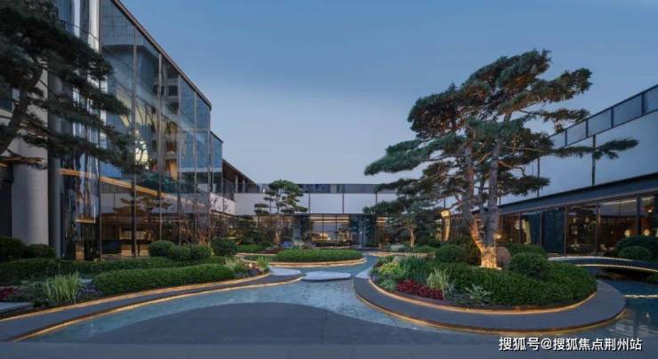 约70米恢弘界面铺陈,取材黄河灵感的龙鳞护甲、凝练河川神韵的黄河照壁,于无声中彰显世家气度。归家大堂内,宝冠穹顶垂落陇中四合院的人文辉光,身后苦水玫瑰盛放,一砖一瓦皆承载土地记忆。下沉庭院九曲松涧循迹黄河湾流,十棵甄选劲松深植其间,让归家的每一步都浸染人文与自然的双重洗礼。