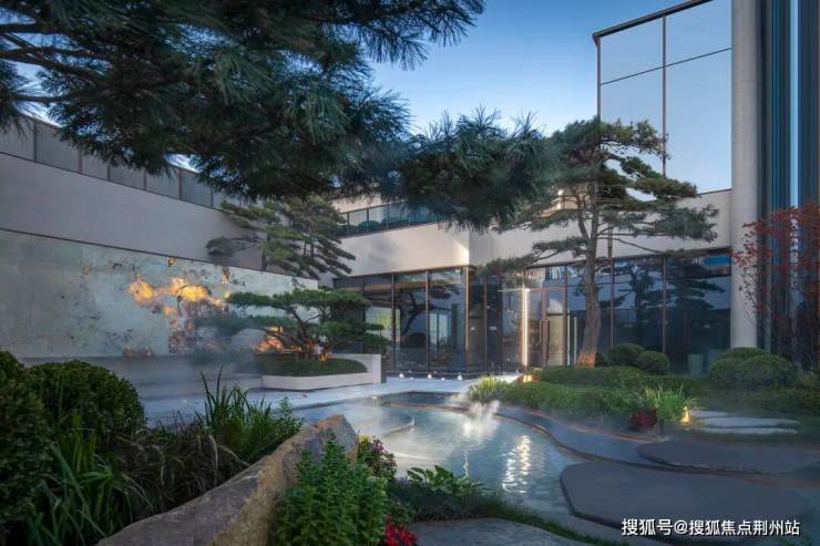 笃信自然即艺术的信仰,让景观园林成为流动的艺术画廊。巴西景泰蓝石材勾勒的门扉质感温润,马达加斯加蓝翡翠构筑的艺术景墙纹理,南美潘多拉透光跌水景墙,随光影流转呈现万千姿态,与十颗珍贵青松相互映衬,形成层次丰富的视觉盛宴。