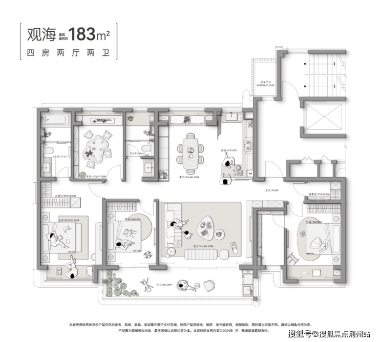 建面约153、183㎡户型均为4房2厅2卫设计,全卧室朝南、大横厅,宽景双联阳台,全屋带飘窗,采光通风效果卓越。