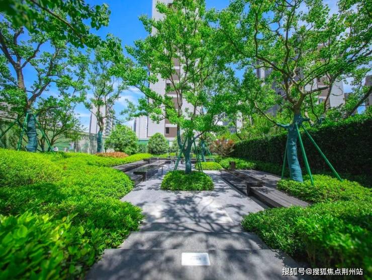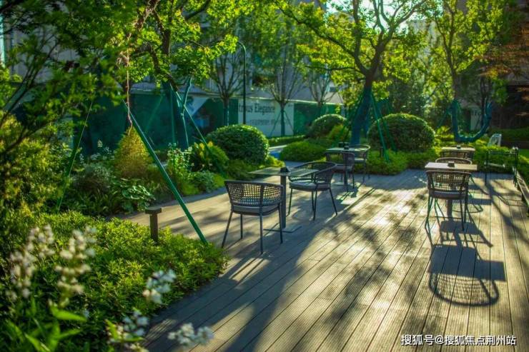 此外,整片园林采用“一轴一环六境”的设计理念。 在中轴线上,突出植物的层次感,并充分尊重业主的人本需求。 约260米的“一环”——森氧环形跑道 ,让业主不必舍近求远到外面锻炼跑步了。最后的六景,则根据不同的年龄组团,开辟出相匹配的互动场景。