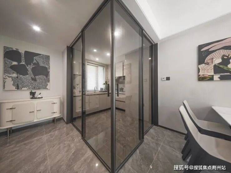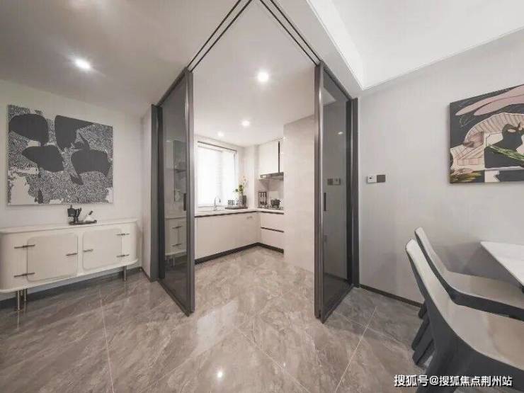 设计师充分考虑现代人工作忙碌,在家重油重烟的厨艺流程逐渐消减,于是把厨房做成半开放。当移门全部打开时,主人能方便的与客人交流。当孩子在客厅满地翻滚时,父母也能边做菜边观察他们。