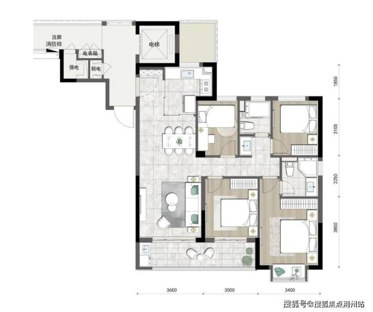 值得注意的还有干湿分离的公卫,在早高峰拥堵时段,该设计能在保护个人隐私的前提下,推进出门的效率。还有约3.6米和约3.4米开间的客厅与主卧,能让业主高喊一句:“家人们谁懂呀,尺度不多不少刚刚好!”