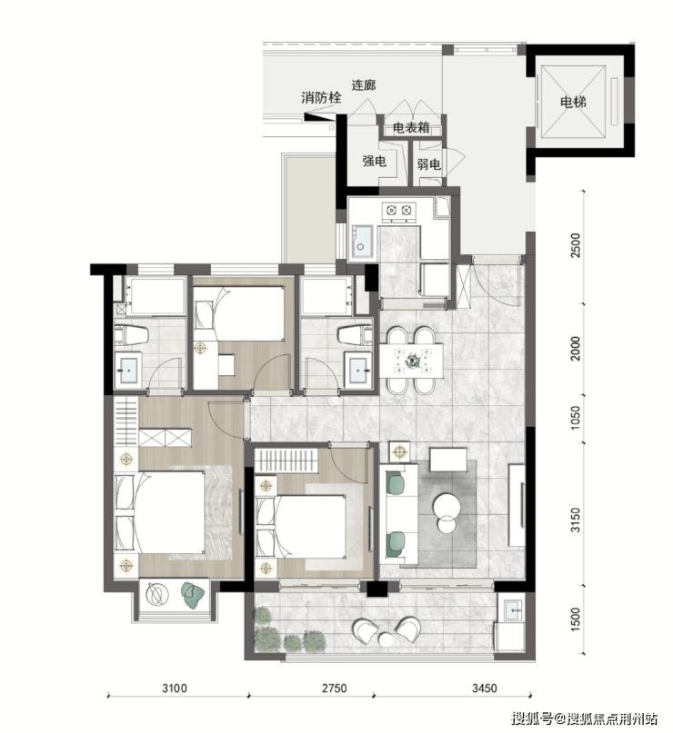 最后四个房间的配置,在满足家庭成员休憩的基础上,还能腾出一个工作学习的房间。让空间富裕的幸福感,溢出这篇文章的手机屏幕。