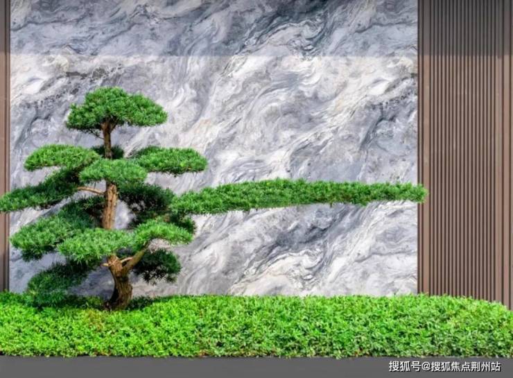 其次,朗玥华章是妥妥的准实景盘。您在现场已能领略她的风采,大尺度的南入口,营造出尊贵的归家仪式感,它的造型颇像古代文人墨客家里的“古代屏风”。在“屏风”左右,辅以苍劲的罗汉松,彰显山水画卷中的工笔之美。大堂的表面,采用石材整体平铺,纹路清晰美观。用手触碰之,石材细腻温润。这样的设计组合,迅速提升了朗玥华章的“门面”之美。